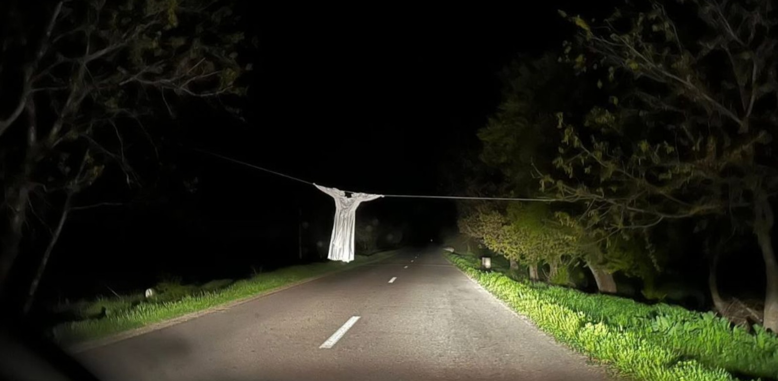 O improvizație bizară a fost descoperită întinsă de-a lungul șoselei, punând în pericol siguranța șoferilor. Imaginile publicate online arată că „obstacolul” consta într-un obiect vestimentar alb, suspendat pe o sfoară, la o înălțime joasă, peste carosabil.