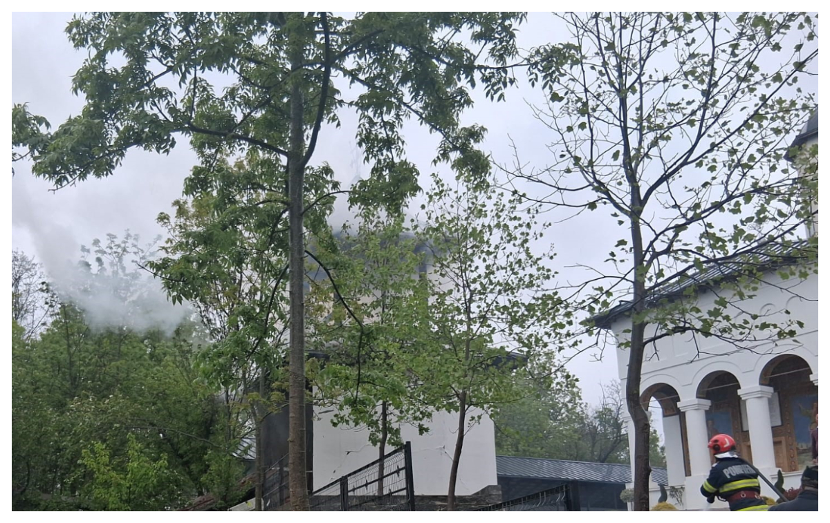 Echipajele operative sosite la fața locului au constatat că incendiul se manifestă la nivelul clopotniței, fără pericol de extindere la construcțiile din apropiere. Până în acest moment nu au fost identificate victime.