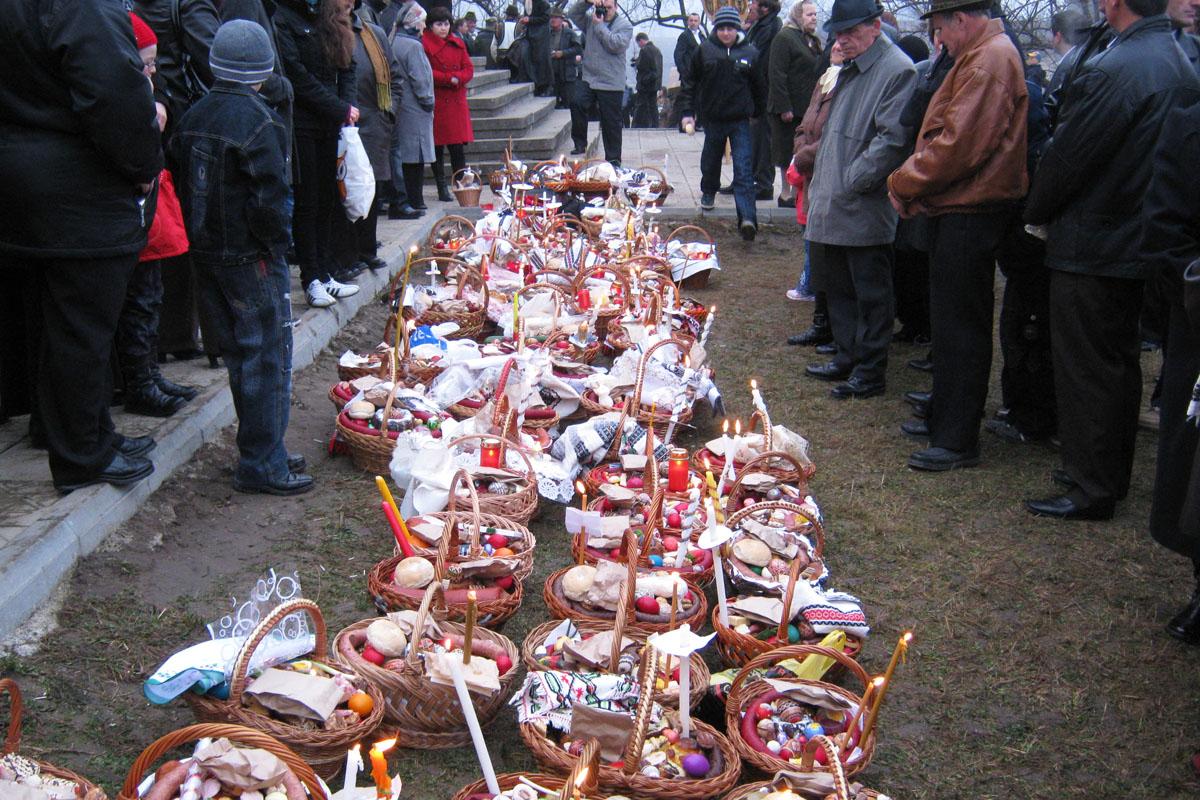 Un rol important îl are și tradiția pomenii. Familiile pregătesc pachete cu alimente specifice, precum pască, cozonac, ouă roșii, colivă sau diverse preparate gătite, pe care le oferă celor din jur sau persoanelor nevoiașe. Acest gest este văzut ca o formă de milostenie făcută în amintirea celor plecați.
