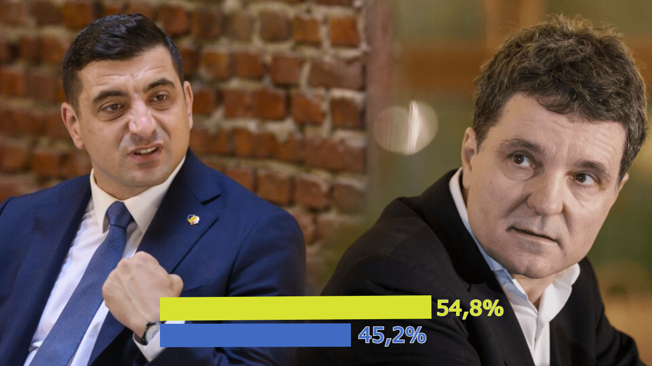 Rezultatele primului sondaj pentru turul al doilea al alegerilor prezidențiale: 54,8% pentru George Simion, 45,2% pentru Nicușor Dan
