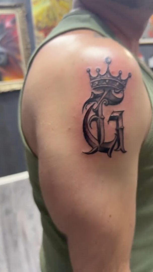 Artistul a mers la un salon de tatuaje și și-a făcut litera „G”, stilizată, cu o coroană deasupra, în semn de apreciere pentru soția lui.